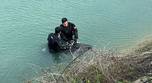 Sualtı arama ve kurtarma ekipleri, suya girerek iş makinesi yardımıyla cesedi çıkarttı.