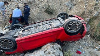 Alanya’da şarampole devrilen otomobilde sürücü yaralandı