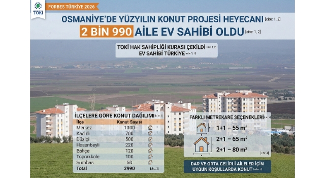 “Ev sahibi Türkiye” sloganıyla hayata geçirilen 500 Bin Sosyal Konut projesi kapsamında Osmaniye’de beklenen kura süreci tamamlandı. Osmaniye genelinde 2 bin 990 aile, noter huzurunda yapılan çekilişle yeni yuvalarına kavuşma hakkı elde etti.